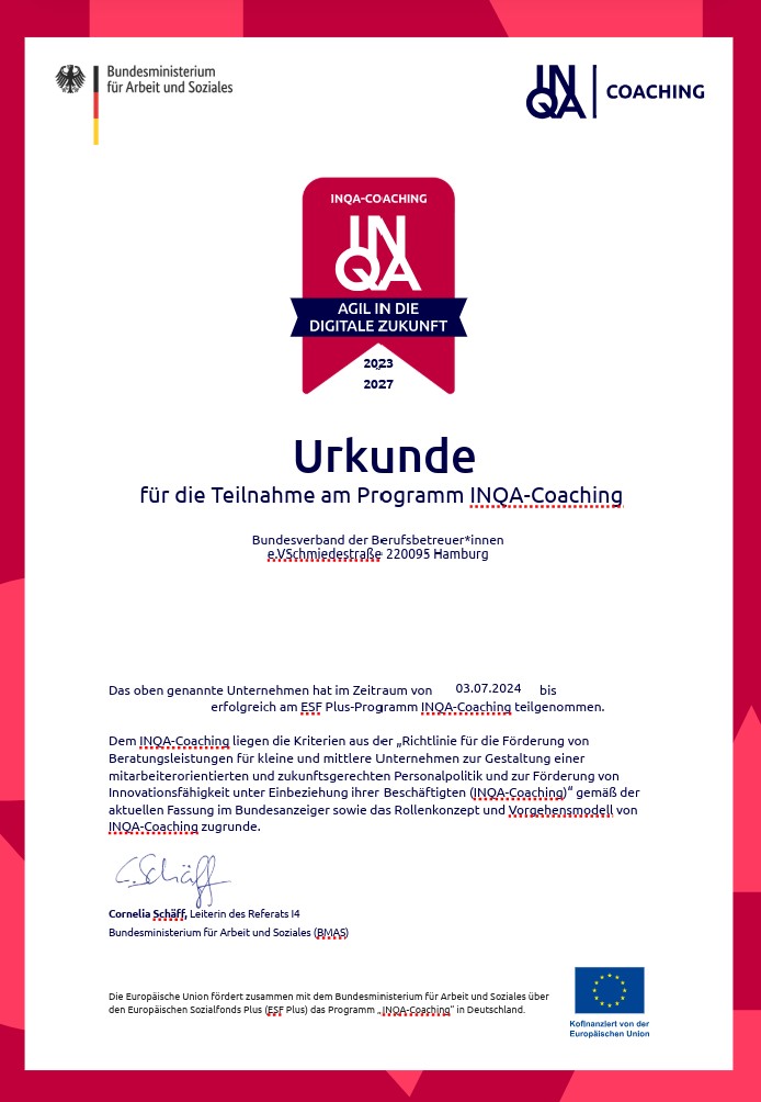 TOP 1: BdB schließt INQA-Coaching erfolgreich ab. (meinBdB)